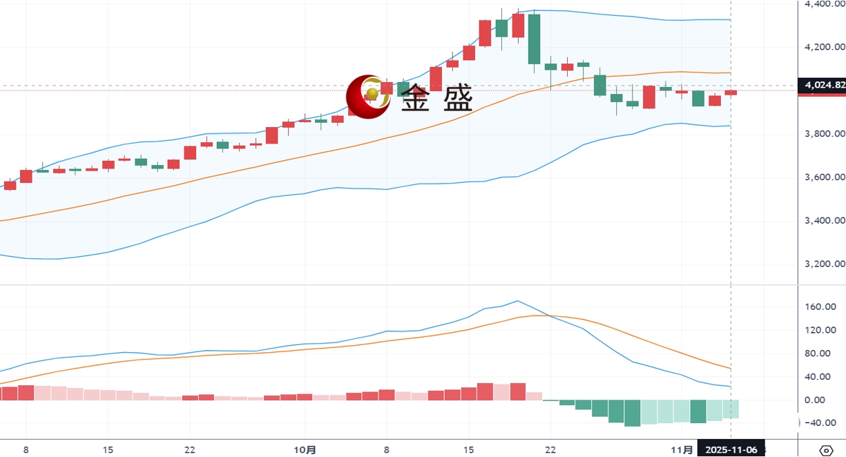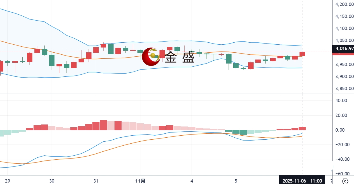 从四小时图来看,现货黄金上一交易日先低位震荡,午后行情回升反弹,晚间小非农ADP数据虽表现向好,但并未能打压黄金走跌调整,行情继续维持偏高震荡,布林道收缩当中,MACD金叉放量,金价突破布林中轨向上,短期多头较强,关注4025关口的突破情况,日内操作建议高抛低吸,下方关注3960-3950区间支撑。
