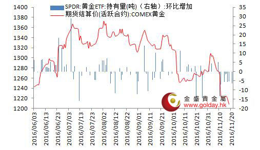 资金面上,全球最大的黄金上市交易基金SPDR Gold Trust的黄金持仓量上一个交易日减少6.53吨,目前持仓量为908.76吨,此前一个交易日减仓5.34吨。目前来看市场预期12月升息已经接近100%,现货投机商连续减仓,对金价有一定压力。
