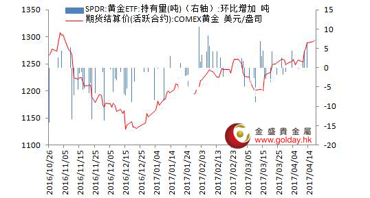 资金面上,全球最大的黄金上市交易基金SPDR Gold Trust的黄金持仓量上一个交易日不变,目前持仓量维持848.92吨,此前一个交易日也不变,上次变动是上周四大幅增加6.51吨。目前来看,朝鲜局势暂时缓和令市场避险情绪回落,现货投资商暂时转为观望而持仓没有进一步增加。