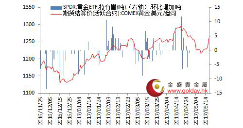 此外,美国总统特朗普与司法机构的矛盾问题继续发酵。昨日美国司法部宣布,前FBI局长Mueller被任命为特别检察官,领导该局对俄罗斯试图影响美国大选的调查;美国参议院司法委员会则要求FBI和白宫提供FBI前局长科米相关的互动备忘录。特朗普称历史上没有政治家遭受过比他更差、更不公平的待遇;众议长瑞安仍然相信特朗普,并称需要查清事实再作判断。德州民主党众议员则Al Green计划今日在国会呼吁弹劾特朗普。我们认为,该事件除了对市场造成短期避险情绪升高的影响之外,其持续发酵将进一步导致市场对特朗普未来执政能力的不信任,这一情况是否出现我们将持续关注,如果该情况出现,则对风险资产尤其是金价将产生明显利多。