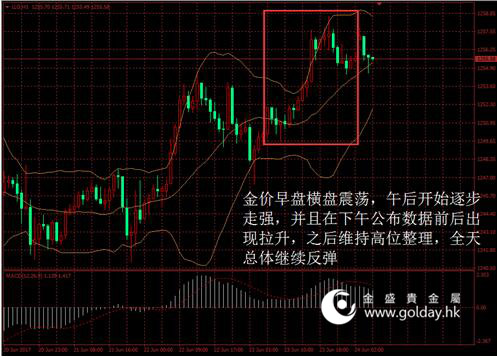 上一交易日现货黄金开盘1250.19美元/盎司,最高1258.68美元/盎司,最低1249.67美元/盎司,收盘1255.61美元/盎司,收盘上涨5.45美元,涨幅0.44%。日内来看,金价早盘横盘震荡,午后开始逐步走强,并且在下午公布数据前后出现拉升,之后维持高位整理,全天总体继续反弹。美元指数日内回落,消息面相对前期偏多,主要投资者小幅减仓,技术面走势现实多头仍强。
