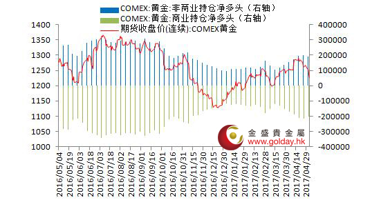 此外,我们此前曾提示,目前市场关注的几个主要焦点事件包括:法国大选、朝鲜半岛局势、美联储6月加息、特朗普减税政策的推行。从当前的进程上看,法国大选和朝鲜半岛局势的开始减弱,前者的影响在选举结束后,马克龙当选的情况下将基本消除,但朝鲜半岛局势的影响仍需要关注。而随着美联储6月加息概率逐步提高到90%以上水平,最大的市场焦点将转移至特朗普减税方面,也即特朗普交易的方面,这一因素对金价是一大利空。同时近期油价再次暴跌,长期通胀的上行速度将更加缓慢,再通胀交易的逻辑进一步走弱也对金价不利。而从历史上看,政治局势变动对金价主要是短期影响,政策的影响持续性较强。因此综合来看,未来中长线看多金价的基础弱化,中短期金价走高应以反弹对待。