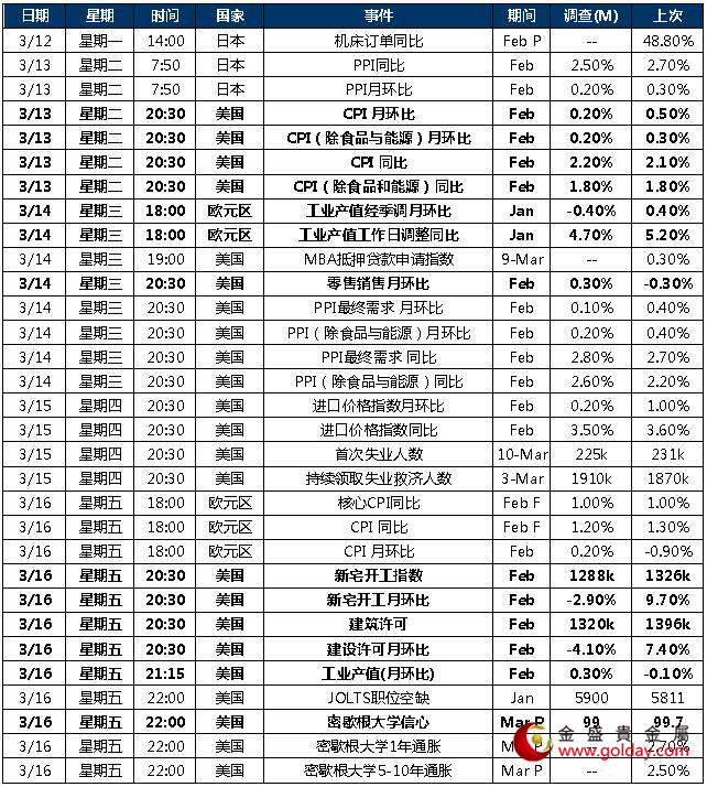 本周重点关注的数据包括,周二的美国的CPI数据,周三欧元区工业产出和美国的零售消费数据,以及周五美国房地产和消费信心数据。