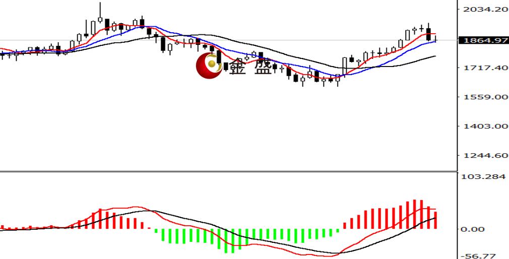 周线图,行情延续调整,但力度有所减缓,当周波动不足四十美金,价格调整至1860美元一带,最终收小K线。均线系统拐头向上,价格围绕短期均线震荡。MACD指标快慢线现金叉,做多的动能的减弱。周线级别,行情调整的第二周,多头未出现明显的反扑,盘中反弹的高度不及大阴线实体的一半,且K现还未出现明显止跌企稳信号,故而调整还将继续,操作上高抛为主。