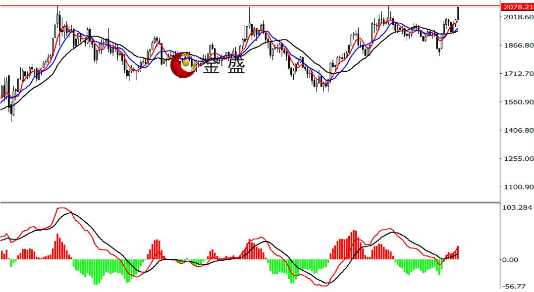 周线图,黄金连续第三周上行,当周波动逾七十美金,创近六周的最大值,最终收饱满中大阳线。均线系统收敛拐头向上,价格依托五周期均线震荡走高。MACD指标快慢线回落至零轴一带,快慢线出现金叉,做多的动能增强。黄金本周实体明显大于前两周,表明市场做多意愿依然强劲,多头筹码未出现松动。后市偏向还有高点,本周前半周重点关注2080美元一带的真假突破。