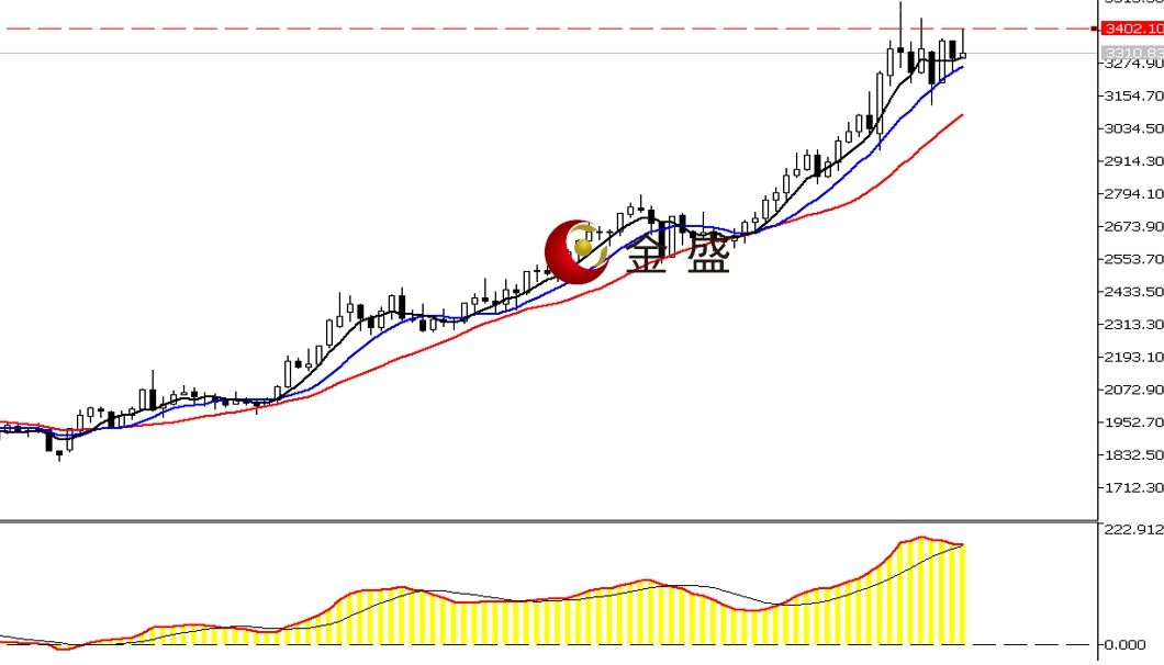 现货黄金开盘3294.17美元/盎司,最高3403.12美元/盎司,最低3294.17美元/盎司,收盘3310.83美元/盎司。