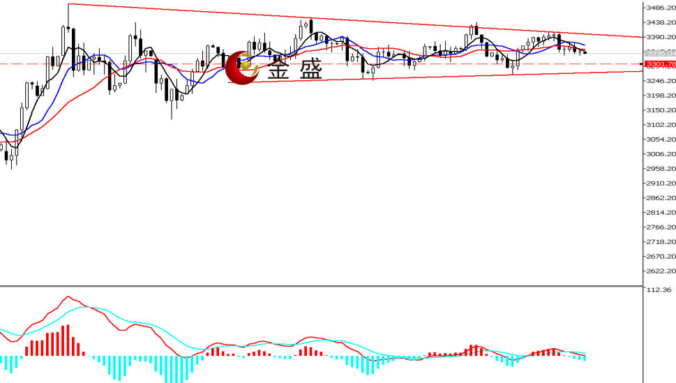 周线图,黄金承压3400美元大关持续调整,当周下挫近八十美金,周线收饱满阴线,K线形成阴包阳结构。均线系统不断收敛,价格回踩布林带中轨。MACD指标快慢线零轴上方现死叉,做空的动能增强。黄金上涨趋势不变,行情进入高位震荡。当前走势无明显方向,多空处于整理蓄势中。本周K线吞没前两周的实体,强化3400美元上方的压力,短期关注布林带中轨的真假破位。