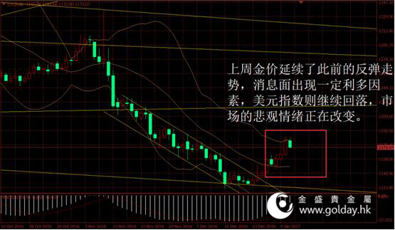 总体来看,上周金价延续了此前的反弹走势,消息面出现一定利多因素,美元指数则继续回落,市场的悲观情绪正在改变。