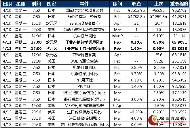 本周公布的重要数据包括:欧洲和日本的工业产值数据,以及美国的通胀数据。