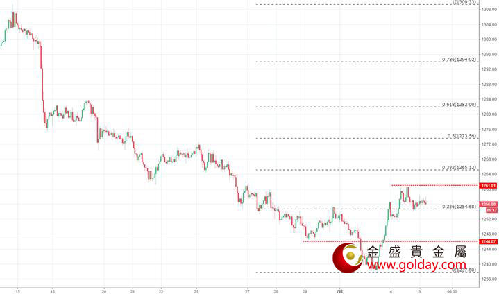 现货黄金上一交易日(7月4日)开盘1252.31美元/盎司,最高1260.95元/盎司,最低1251.93美元/盎司,收盘1258.01元/盎司,收盘上涨3.8美元,涨幅0.3%。