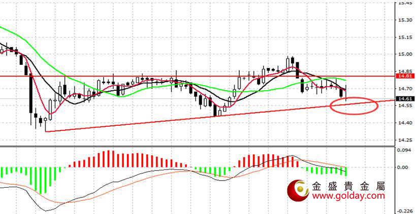 上方阻力:14.75—14.78 14.81 14.85—14.88