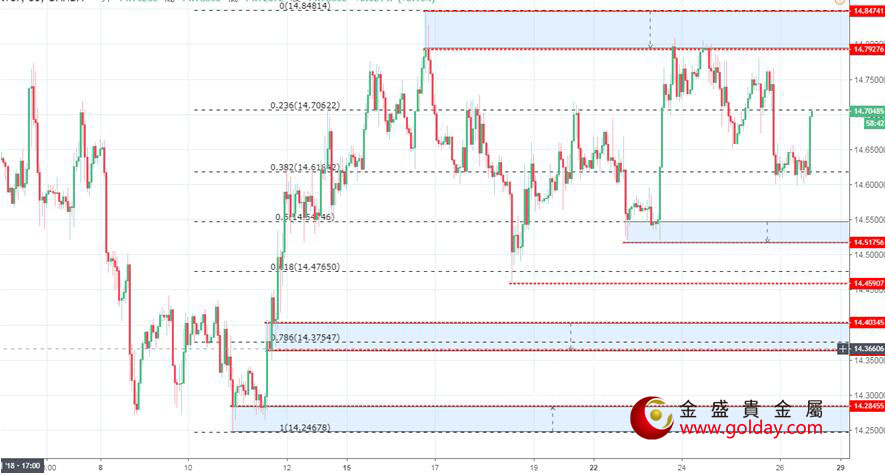 下方支撑:14.60、14.55-52、14.45