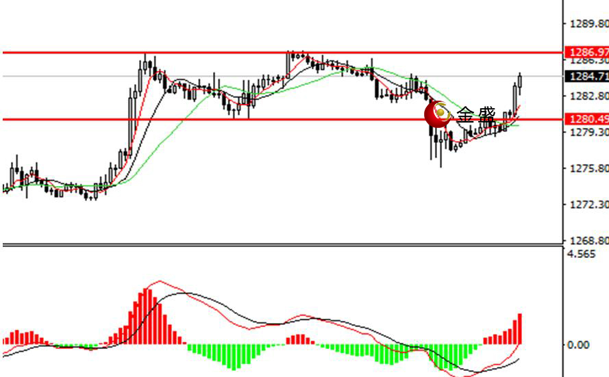 前一交易日,行情向下走出整理格局,价格在低位1276一带连续出现三根长下影线K线,表明前一个波段的61.8%有很强的支撑。今天日内行情以震荡上行为主,价格重新进入盘整区间,这表明昨日的破位是假突破,行情短期依然围绕1280--1287整理,尤其在向下突围失败后,价格将尝试向上走出盘整结构,均线系统拐头向上, MACD指标在零轴附近运行,做多的动能为主,操作上建议低吸为主,高抛为辅。
