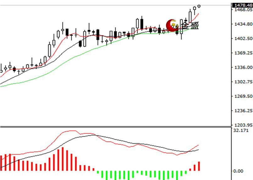 前一个交易日,黄金在亚盘高开短暂冲高承压回调,欧盘一直围绕1460一带博弈,美盘再次上行,日线收一根有影线的阳线。价格在突破区间上轨之后,上行速度有所加快,均线系统呈现多头排列,MACD指标快慢线现金叉,做多的动能在放大,大结构走势重新进入的上涨趋势,操作上低吸为主。