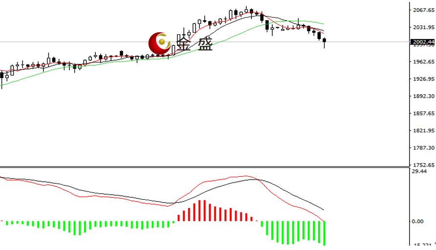 前一个交易日,白盘黄金区间小幅震荡,美盘后出现短暂拉升,反弹高度正好是前一波下跌50%,随后持续下挫。今天日内价格围绕2015美元/盎司横盘数小时,午后出现快速跳水,价格失守千二关口,日内下跌近四十美金。均线系统拐头向下不断收敛,MACD指标快慢线在零轴上方现死叉,做空的动能为主,价格盘中回落至1990出现快速反抽,晚间关注二次回踩的企稳信号,操作上出现企稳信号博弈反抽。