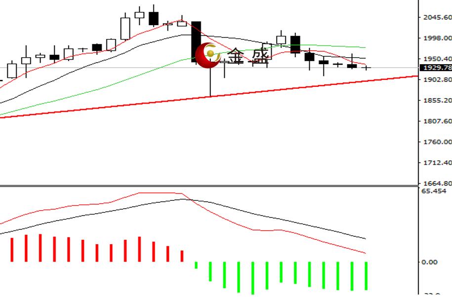 前一个交易日,亚盘时段,行情企稳1930关口窄幅休整,临近欧盘,多头动能增强,一小时上冲十多美金,随后延续上行,晚间行情再次出现假突破,盘中最高价至1961.63美元/盎司,随后一路向下刷新日内新低,日线收一根有上影线的阴线。均线系统拐头向下,MACD指标在零轴上方现死叉,做空的动能为主,全天走势呈现倒V字型,且下跌速度明显快于上涨,表明上行动能欠佳,日内关注区间下轨一线企稳信号,操作上高抛为主。