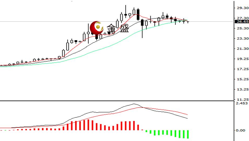 前一个交易日,亚盘时段,白银先延续调整,价格回落至26.3美元止跌企稳,欧盘时段,价格出现连阳上行,晚间形成日内高点27.23美元/盎司回落,此价位正好落在自高点28.4美元形成的下降趋势线,日图收小阴线。均线系统逐渐靠拢,即将选择方向变盘,MACD指标现死叉,做空的动能为主,下方强支撑位26一线,操作上高抛低吸。