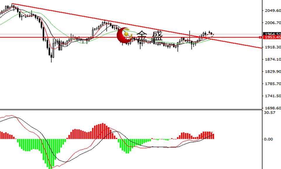 前一个交易日,黄金震荡高走,白盘就拉升近40美元,动能表现与周四晚间完全相反,美盘再次上行至1970一线。行情走出了低位盘整区间和下行压力线,短期偏向延续上行。今天日内价格高开冲高回落,均线系统拐头向上,MACD指标零轴上方运行,做多的动能为主,之前的盘整区间1925—1955被突破,日内或做回踩确认,操作上关注上轨一线的企稳信号,操作上做多为主。