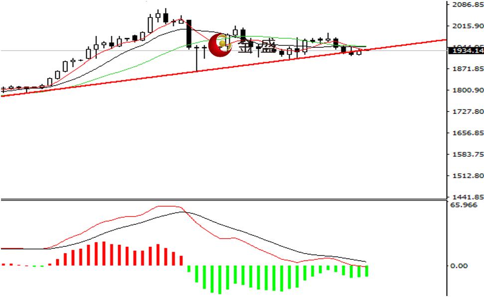 前一个交易日,亚盘时段,黄金震荡上行,价格重回1940一线,行情突破小时图的压力线,欧盘时段,价格围绕十美金的区间整理,晚间非农数据利空,黄金短暂冲高后拐头大幅下挫,盘中一度失守1920关口,尾盘收复部分失地,日图收阳线。均线系统收敛压制价格上行,MACD指标在零轴上方运行,做空的动能增强,价格再次回落至上行趋势线一带,今天美国休市,行情或延续1920—1950区间整理。