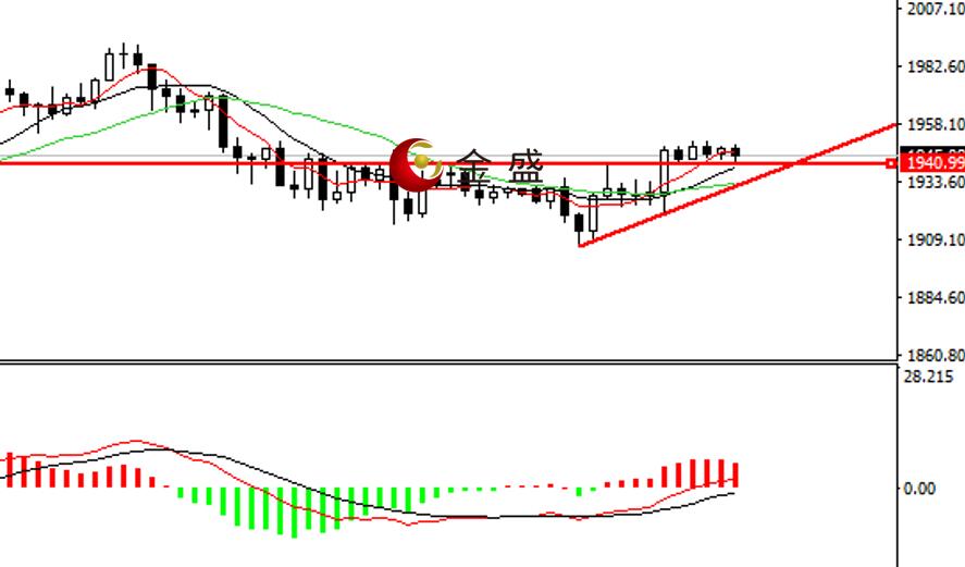 前一个交易日,白盘行情以震荡下行为主,盘中最低下探至1920一线,也是最近一波上涨的61.8%附近,晚间行情单边走高超三十美金。今天日内围绕1942—1950整理。均线系统拐头向上,MACD指标零轴下方现金叉,做多的动能持续放大,小时图出现明显的三浪上涨结构,日内调整幅度不大,多头动能依然强劲,操作上调整做多为主。