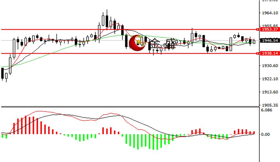前一个交易日,行情全天围绕1940—1950区间盘整,期间多空双方尝试走出结构,但最终未能形成有效突围。今天早盘行情延续结构内整理,价格在下轨出现饱满阳线,短暂走高至上轨承压回吐部分涨幅。均线系统走平,MACD指标零轴现近叉,做多的动能为主,短期行情走势方向不明,多空围绕十美金空间博弈,晚间行情或打破区间结构,操作上高抛为主。