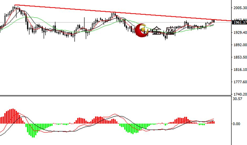 前一个交易日,白盘行情围绕十美金左右空间来回震荡,晚间价格价格向上突破结构,盘中一度站上1960关口,尾盘小幅回落。今天早盘行情延续上涨,价格走高至1970一线承压,也是图示四小时结构压力线一带,小时图出现阴包阳反转形态。均线系统拐头向上,MACD指标零轴现金叉,做多的动能为主,下方1950一线是支撑位,留意企稳信号,操作上高抛低吸。