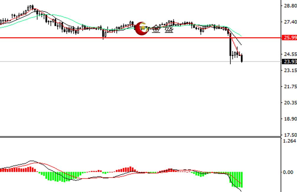前一个交易日,欧美股市集体下挫,拖累大宗商品原油、铜走低,白银盘中出现两次大幅下挫,日内下跌超三美金。今天日内以休整为主,价格震荡偏反弹,反抽高度不及昨日下跌的一半,即多头力度明显弱于黄金,午后出现二次回踩,价格再次跌破24关口。小级别有形成双底雏形,但当前空头势能较强,且连续多日的整理,刚刚走出方向,故操作上高抛为主。