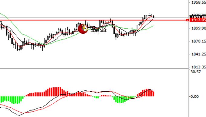 前一个交易日,黄金日内不断拉升,晚间突破1920一线,全天上涨超三十美金。四小时结构,行情完成对茶杯结构的突破,即确认自1850开始的上涨延续,今天日内行情窄幅休整。均线系统多头排列,价格依托五周期均线上涨,MACD指标零轴上方运行,做多的动能为主,短期行情涨幅偏大,日内关注1920一线的真假突破,操作上做多为主。
