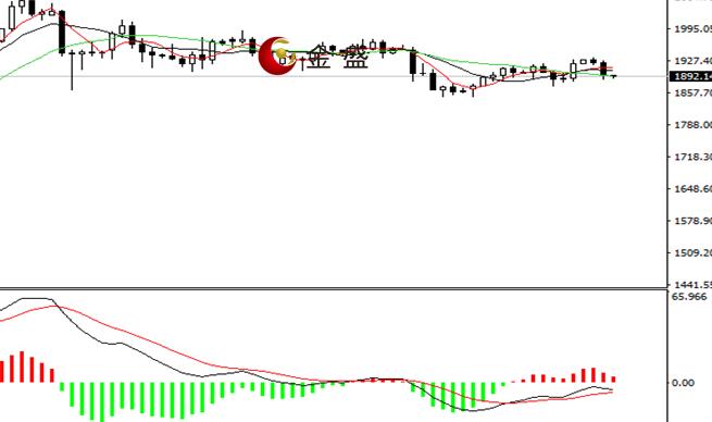 前一个交易日,亚盘时段,黄金向下跌破周一盘整区间,价格回落至1910一线止跌回升,晚间基本面消息繁杂,避险升温刺激美指突破低位整理区间,黄金大幅下挫,接连打破多个整数关口,日图收饱满阴线。均线系统收敛,MACD指标在零轴下方现金叉,做多的动能减弱,上周五的中阳线被昨日阴线吞没,短期空头动能强劲,操作上反弹做空为主,下方强支撑位在1880—1875区间。