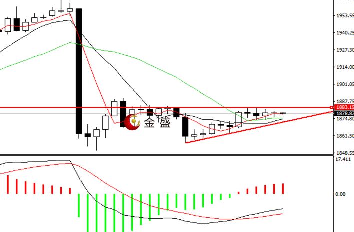 前一个交易日,行情呈现平台式缓慢爬升,白盘波动偏小,晚间上行超十美金,价格盘中重回1880一带。今天日内行情再次出现短暂走高之后的长时间窄幅休整,短期均线逐渐走平,MACD指标零轴下方运行,做多的动能有所增强,四小时技术形态呈现V字型结构,行情蓄势准备突破1890关口,且美指受阻93一线展开调整,利好金价走高,操作上1870—1895区间高抛低吸。