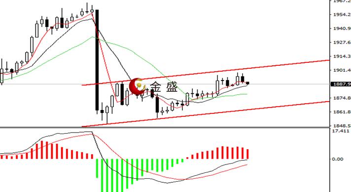 前一个交易日,行情延续上涨—盘整—上涨的平台式上行节奏,晚间上冲至前一波下跌的38.2%一线承压,近四天的盘整走出趋势结构,在四小时图上,呈现图示的上涨通道,今天早盘行情再次小幅走高,但多头受阻九千一线拐头,午后回吐早盘大部分涨幅,均线系统拐头向上,MACD指标零轴下方运行,做多的动能为主,操作上高抛低吸。