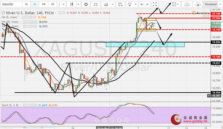 现货白银周四(9月8日)亚盘和欧盘小幅震荡上行,目前仍处在回踩过程中的小反弹。上方关注阻力20.00-19.95美元/盎司区间,突破看20.20和20.40美元/盎司,突破不了做空,下方关注19.78-19.70区间的支撑,下破看19.50美元/盎司一线附近,支撑住反抽20整数关口附近做空。如果和欧洲央行时间在一起,止损则要带在20.10上方。