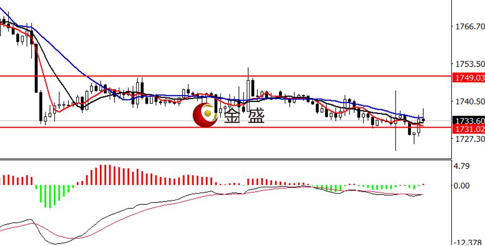 现货黄金周二(7月12日)开市于1733.46美元/盎司,亚欧盘时段,美指加速上行至108.5一线,但小时图指标有超买迹象。黄金早盘一小时出现超二十美金波动,价格在1830美元关口失而复得。截止目前,金价最高1744.02美元/盎司,最低1723.11美元/盎司。黄金围绕1730—1750区间盘整超三天,今天向下变盘未成功,即形成假突破,1730一线的支撑确认有效,短期行情将震荡偏反抽,价格偏向测试区间上轨压力。