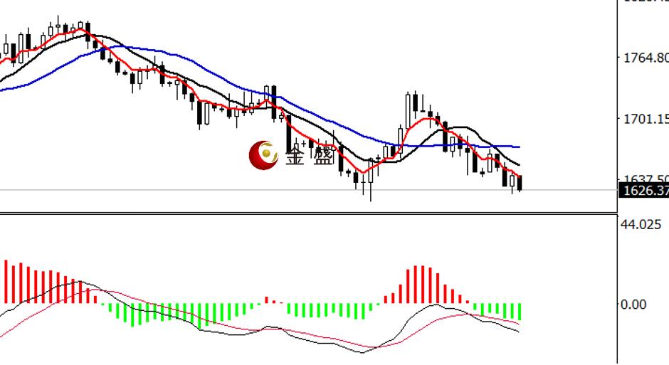 前一个交易日,白盘时段,行情短暂下行创当日低点1622.31美元,随后拐头震荡走高,午后进一步扩大日内涨幅。晚盘时段,行情盘中涨幅一度突破1%,价格最高至1645.38美元,尾盘连续阴线下挫回吐日内全部涨幅,日图十字星。均线系统空头排列,价格承压五周期均线。MACD指标零轴下方现死叉,做空的动能为主。昨日黄金技术性反扑,价格在之前盘整区间下轨承压快速走低,确认1640一线压力有效。后市价格偏向测试前低支撑,操作上反弹做空为主。