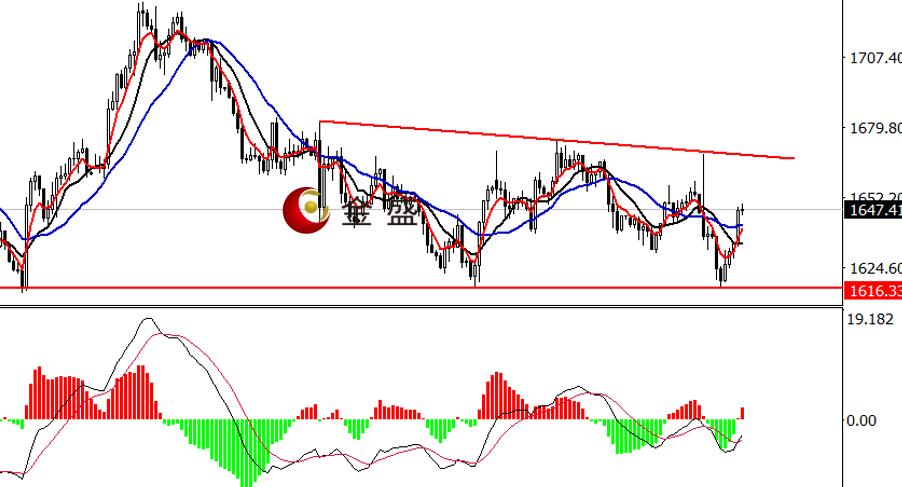 现货黄金周五(11月4日)开市于1629.3美元/盎司,亚欧盘时段,美指承压113关口震荡走低,调整五十个点后止跌反弹。黄金企稳1630美元关口拉升近二十美金,午后涨势减缓。截止目前,金价最高1649.4美元/盎司,最低1628.48美元/盎司。黄金第三次回踩1620一线止跌反弹,短期关注反弹的持续性,1670一带是下行趋势的多空分水岭,不能突破1670一线,则偏向震荡走低。晚间美国公布10月非农就业人口。如果数据没有如预期放缓,美联储鹰派预期会继续升温,美元恐进一步上行,则黄金将再度承压。