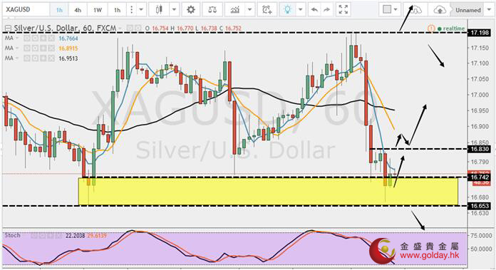 国际现货白银周三(12月14日)亚盘和欧盘小幅震荡上行,昨天同样说过,总体思路和黄金基本一致建议保持低多思路,虽然下方最理想抄底的两个位置16.30-16.40和15.95-15.75美元/盎司两个区间没给到,但给到我们16.74-16.65的这个做多区间了。上方最好站稳17.20美元/盎司以后再加仓,现在也是可以抄底,但仓位要轻。