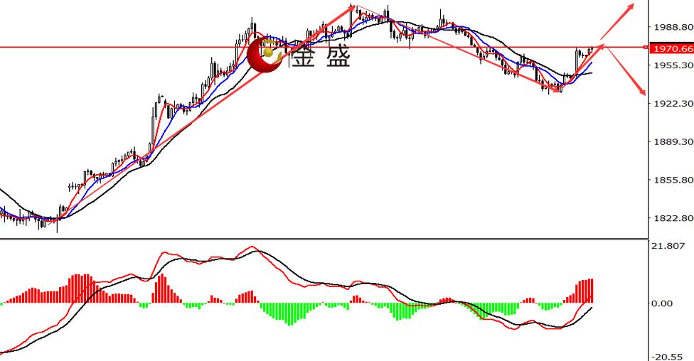 前一个交易日,美国10月CPI超预期降温,市场相信加息已结束,美指跳水收跌逾1%。黄金白盘窄幅整理,晚间大幅飙升至1970美元一带,当日波动近三十美金。今天白盘黄金短暂休整后再度上行,午后价格刷新昨日高点。四小时周期,均线系统收敛向上拐头,运行在价格下方形成支撑。MACD指标快慢线零轴下方现金叉,做多的动能增强。黄金周内的反弹收复上周一半的失地,价格来到1970美元一带,此处是高位震荡区间的下轨压力位。昨日行情大幅走高,今天日内无明显调整,表明多头维持强劲,短线关注1980美元附近的压力。