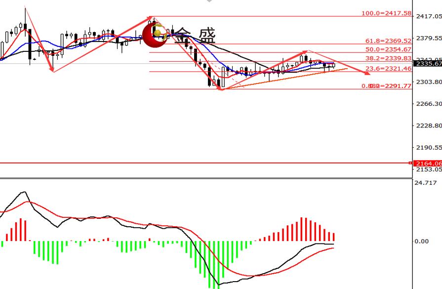 现货黄金周一(4月29日)开市于2337.54美元/盎司,亚欧盘时段,美指承压106美元关口横盘数小时,午后出现跳水走势,一小时下挫近六十点。黄金先跌后涨走V字型,价格围绕小时图布林带中轨震荡。截止目前,金价最高2337.65美元/盎司,最低2319.85美元/盎司。四小时周期,黄金形成下行趋势,上周反弹高度正好落在前一波的50%附近。短期不能强势突破2350美元一带,则偏向震荡下行。同时上周的反弹结构未被破坏,今天调整至趋势线有反抽,2310美元一带是多空分水岭。短期看震荡,操作上高抛低吸。