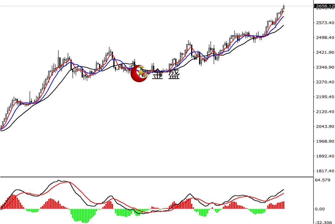 现货黄金周三(9月25日)开市于2656.93美元/盎司,亚欧盘时段,美指先跌后涨走V字型,指数回踩前低100.2美元关口止跌回升。黄金早盘拉升逾十美金,随后连续调整回吐全部涨幅。截止目前,金价最高2670.3美元/盎司,最低2651.62美元/盎司。小时周期,黄金日图延续连阳上涨。利率决议之后,上行空间逾一百美金,且期间无明显调整,可见多头情绪爆表。价格低点形成上涨趋势线,短期指标出现超买信号,操作上不宜追涨,等待回踩趋势线止跌再博弈多单。