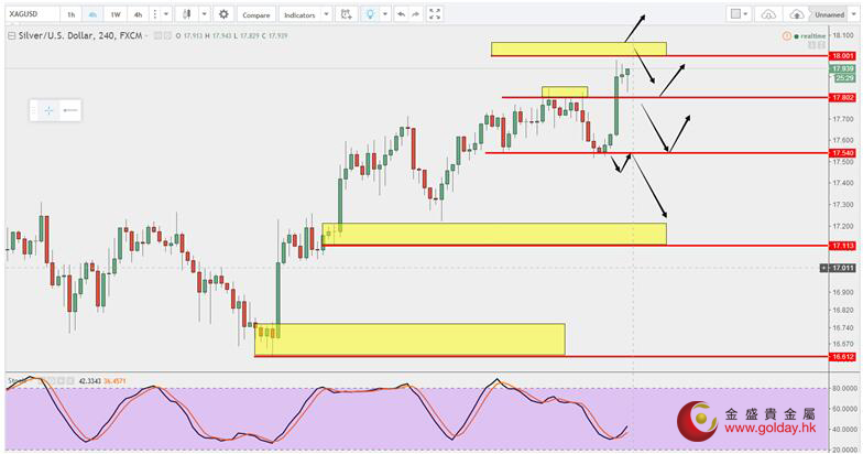 国际现货白银上周五(2月10日)亚盘和欧盘震荡上行,美盘持续冲高,继续创出新高。上方关注18.00整数关口和18.15美元/盎司附近的阻力,突破则需要观望,不要追多。下方关注17.80和17.60-17.55美元/盎司的支撑,回落获得支撑可以做多。若下破17.54美元/盎司则下方还有空间。