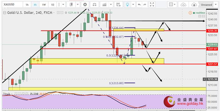 国际现货黄金周一(2月13日)亚盘和欧盘依然维持震荡下行。上方关注1235和1239美元/盎司两线的阻力,突破不了可以轻仓做空,若突破1239一线,则需要观望。下方依然关注1221美元/盎司上方的支撑区间,首次触及可以做多。若下破1221,美元/盎司则下方还有空间。