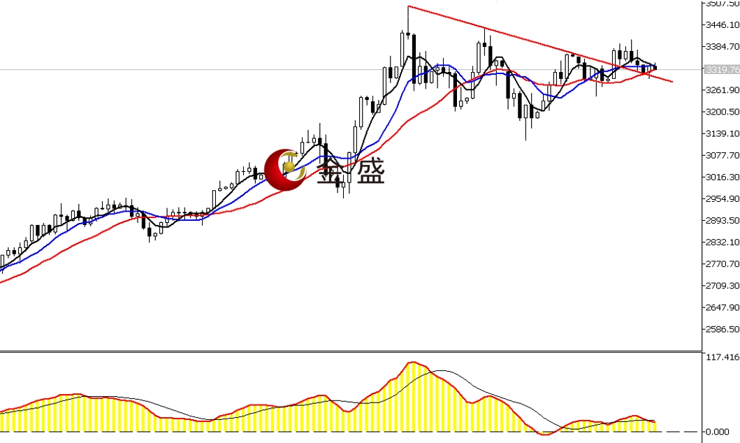 前一个交易日,早盘时段,黄金小幅高开低走,一小时下挫二十美金,价格创日内低点3293.6美元。午后行情持续反弹,价,多头收复早盘全部跌幅。晚盘时段,黄金延续上行,盘中最高至3337.96美元,尾盘有所调整,日图收小阳星。均线系统收敛走平,价格回踩布林带中轨。MACD指标快慢线零轴上方现死叉,做空的动能增强。昨日多头依托3300美元关口有所反扑,但K线实体偏小,止跌信号偏弱。短期关注二次回踩的K线反应,操作上反弹做空为主。