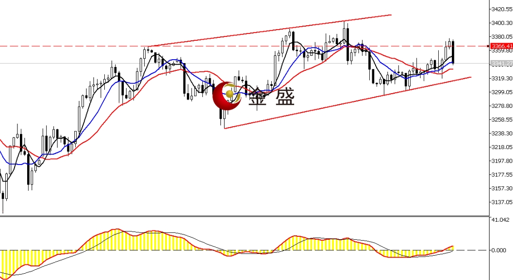 上方阻力:3370—3380 3390—3400 3405