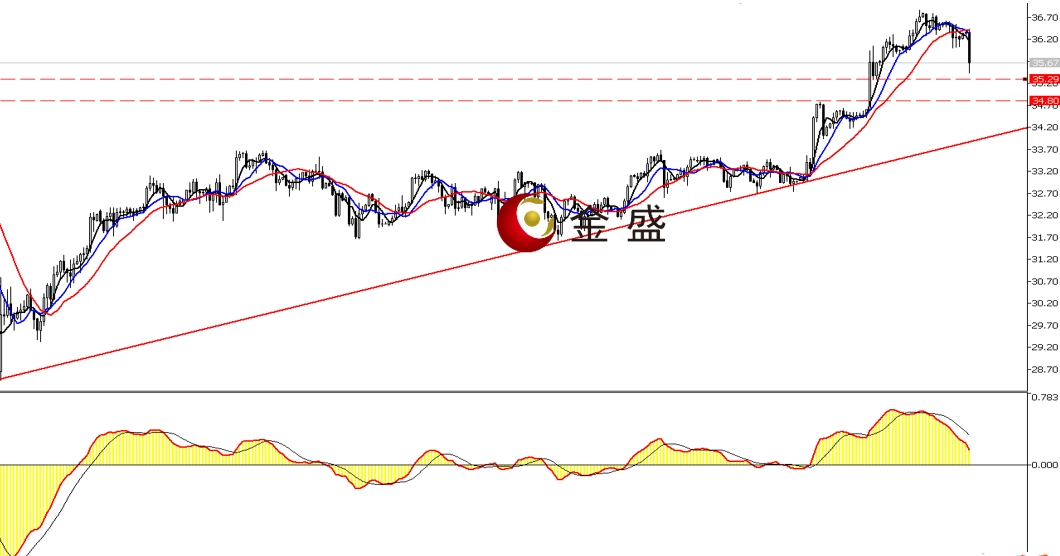 上方阻力:36—36.2 36.4—36.6 36.8