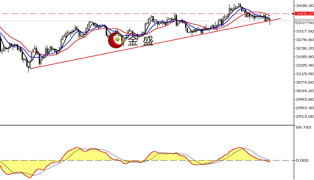 现货黄金周四(6月19日)开市于3368.88美元/盎司,亚欧盘时段,美指延续反弹创新高,但力度减缓,日内指数围绕99美元关口徘徊。黄金承压3380美元关口震荡下行,午后有所反抽,一小时拉升近二十美金。截止目前,金价最高3387.7美元/盎司,最低3347.49美元/盎司。黄金自3120美元开始的上涨趋势不变,价格低点形成支撑线。周内避险情绪降温,金价连续多日调整至趋势线一带。日内小时周期出现阳包阴结构,表明3360美元一带多空分歧明显。短期盘面或围绕趋势线震荡,操作上高抛为主,低吸为辅。