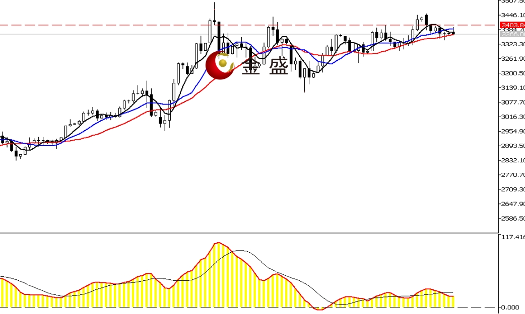 前一个交易日,早盘时段,黄金延续调整,价格承压3370美元一带震荡走低。午后创日内低点3340美元。晚盘时段,避险情绪有所升温,黄金多头力度增强,金价一小时三十美金收复当日全部跌幅,盘中创日内高点3374.21美元,最终收长下影线十字星。均线系统收敛走平,价格回踩布林带中轨。MACD指标快慢线零轴上方运行,做多的动能减弱。上周以伊局势依然紧张,但金价持续下行。周末美国直接对伊朗实施打击,今天早盘金价再次高开,避险情绪恐难延续,操作上反弹做空为主。