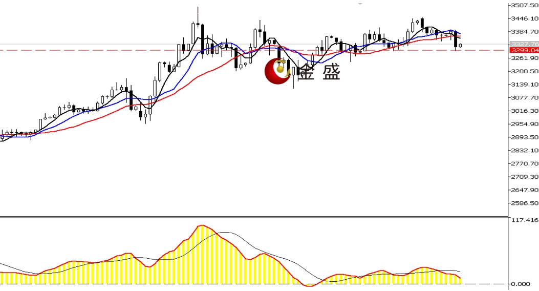 前一个交易日,早盘时段,因以伊达成停火协议,市场避险情绪消散。黄金开市即创当日高点3369.2美元,午后延续下行,一小时下挫超二十美金。晚盘时段,行情先跌后涨走V型,价格一度刺破3300美元大关,尾盘持续反弹,最终收有下影线的阴K。均线系统收敛走平,运行在价格上方形成阻碍。MACD指标快慢线零轴上方现死叉,做空的动能增强。昨日避险降温,黄金持续走低,价格回踩至3300美元一带有所反抽,但K线还未明显止跌。短期看反扑的持续性和高度,上方强压力位看3340美元一带。