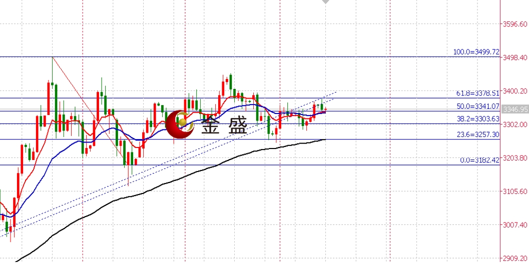 昨日黄金先扬后抑,K线保持震荡,K线结构保持震荡修正,从K线级别上行情突出上行多头空间回踩,小级别上看,K线动能减弱,日内主要留意3352美元/3354美元的调控区间的支撑防守情况,从EMA均线上看,均线隶属多头属性,短期EMA再次回踩金叉,从2840美元起点双性趋势线上看,K线目前承压趋势线压力,从黄金分割线上看,行情承压61.8位置附近,表示空动能优先多头动能,需要区间打开才能更好的进行参与。所以,在修正中建议高抛低吸。