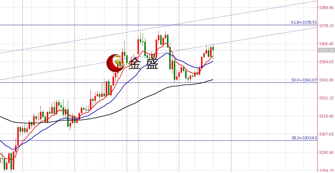从小时图上看,亚盘行情震荡上行,符合预期的修正,从K线排列上看,K线结构并未呈现方向的一致迹象,从EMA技术指标上看,目前价格受EMA的短线支撑,并以多头为基础展示,表示EMA系列的支撑够强,从黄金分割技术指标上看,目前价格有动能测试黄金分割61.8压力位置3378附近,从日线级别的趋势线上看,目前价格运行在趋势线的双线下沿压制附近,表示行情的压力足够,但是需要K线的冲击配合,趋势线的压制重叠二次压制3368附近,综上所述,压制关口沿线,重点关注K线动能的减弱趋势还是上破动能增强趋势,行情若未能以大的K线进行上破,则行情需要留意上涨衰竭的信号。