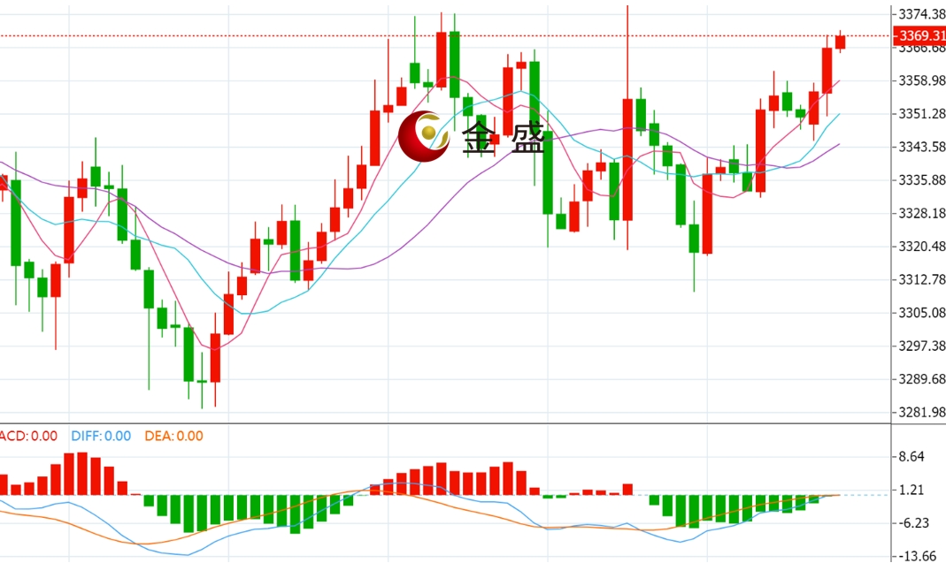 四小时图前一个交易日,亚欧盘黄金最低回落触及到了3331美元一线后开启大涨走势,美盘大涨触及到了3361美元一线,最终收涨0.34%。今天黄金早间开盘小幅回踩3344附近后再度走高,价格一度冲上3370美元一带。MACD指标快慢线零轴附近现金叉,做多的动能为主。目前短期的运行已呈震荡上行的格局,走势上还有继续上涨的空间和需求,操作上建议回踩继续做多为主。